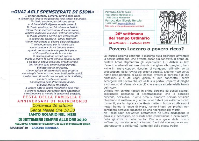 Martedì 14 partirà invece il Corso biblico "Conosciamo la Parola di Dio", tenuto da don Giorgio Bertola, per approfondire insieme la Sacra Scrittura. L'appuntamento è ogni quindici giorni alle ore 19, dopo la messa feriale.
