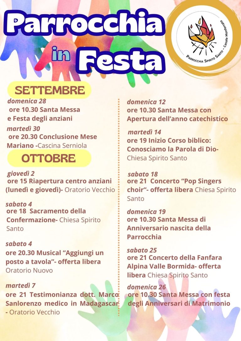 Tantissimi gli appuntamenti che la Parrocchia si appresta a vivere nelle prossime settimane in vista anche della festa dell'anniversario della fondazione della Parrocchia. Si può proprio dire che ce n'è per tutti i gusti. Si inizierà con domenica 28 settembre quando sono invitati alla celebrazione della Santa Messa e a far festa i nostri anziani. Sempre per loro riaprirà, dopo la pausa estiva, il Centro Anziani ogni lunedì e giovedì dalle 15 alle 17.