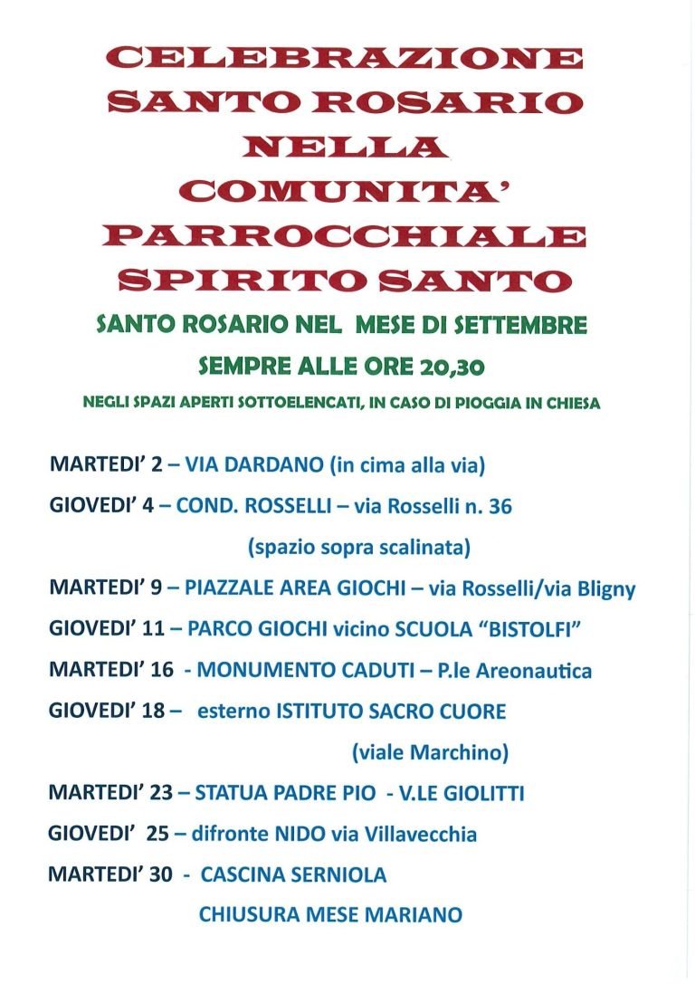 Ogni martedì e giovedì alle ore 20.30 celebriamo insieme la preghiera del Santo Rosario. A fianco il calendario e i luoghi della comunità dove ci ritroveremo.